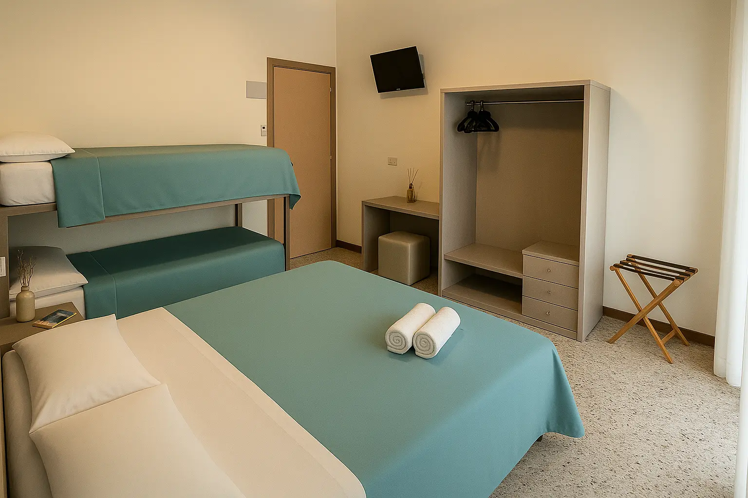Camere pensate per il vostro relax, a pochi passi dal mare e dalle Terme di Riccione.
